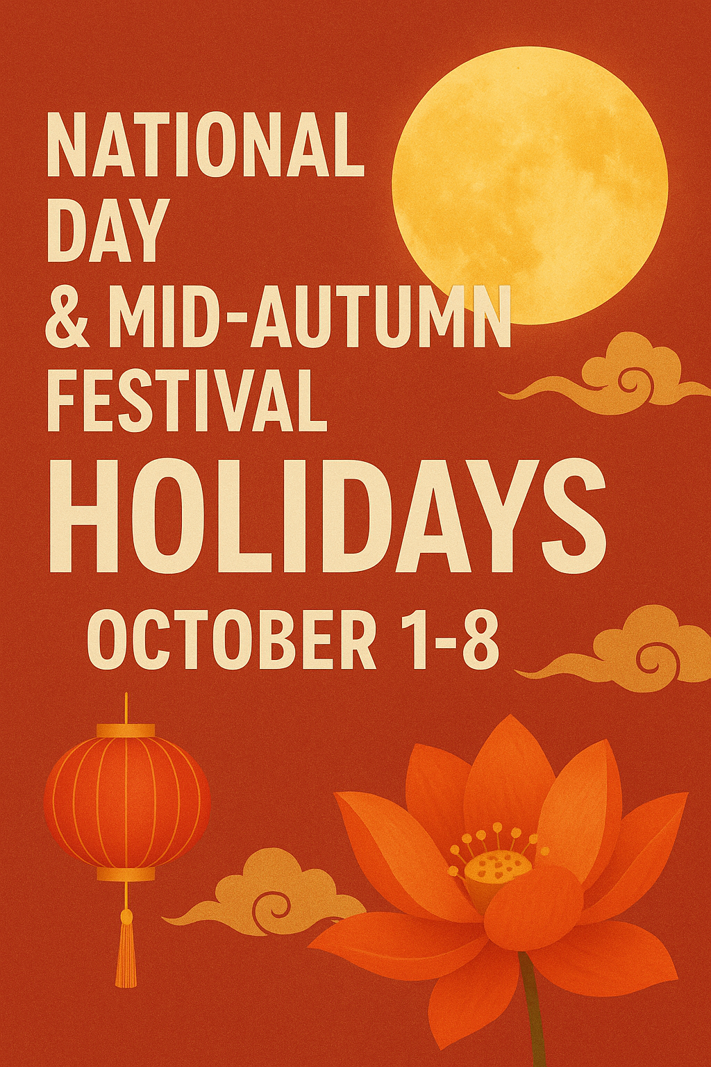 Per attuare l'accordo nazionale per le festività combinate della Festa Nazionale del 2025 e del Festival di Metà Autunno, Ningbo FEITUO Electric Appliance Co., Ltd. adotterà un programma festivo unificato, delineando anche le prospettive di sviluppo dell'azienda. I dettagli sono i seguenti: