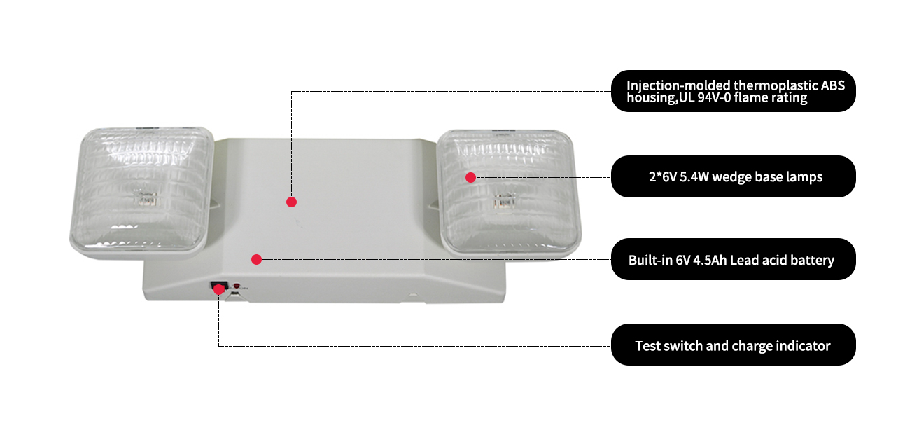 Casa / Prodotto / Luce di emergenza / Luce di emergenza a doppia testa / JEU1 2x5.4W Lampada di emergenza a incandescenza
