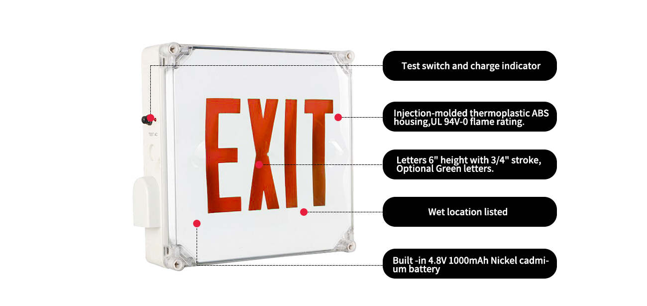 Segno di uscita a LED impermeabile esterno (posizione bagnata, lettere rosse)