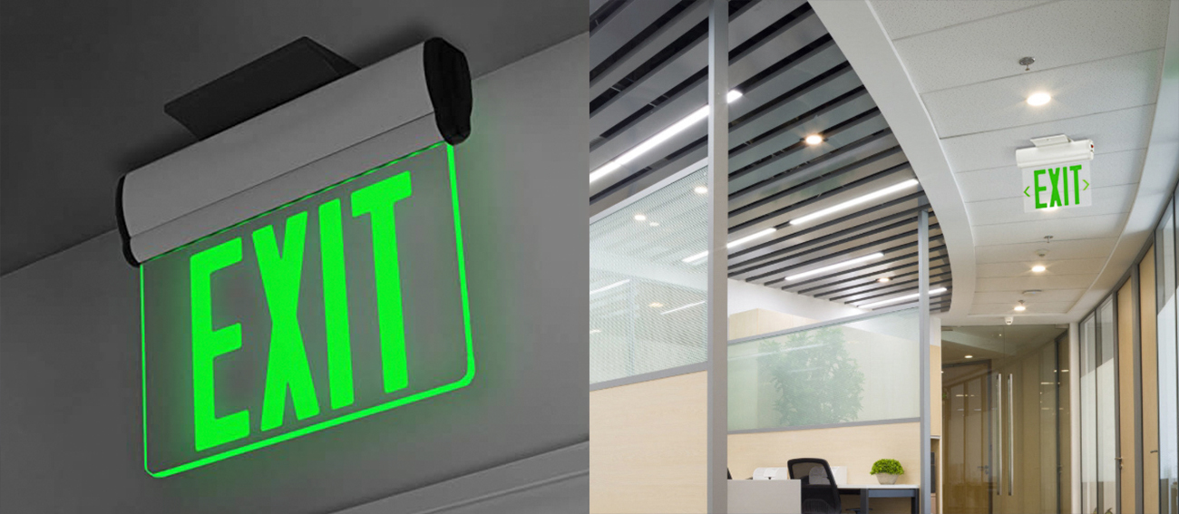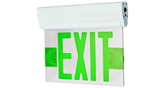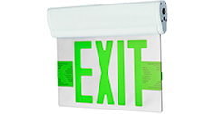 *Illuminazione - Questa serie di segni di uscita illuminata a bordo fornisce un'illuminazione a LED a vita lunga. L'unità è costruita con una scheda LED di uscita elevata verde.  Il consumo di energia è valutato a meno di 4 watt per le unità modello solo AC. Le unità di backup della batteria il consumo di energia è valutato a meno di 1 watt.