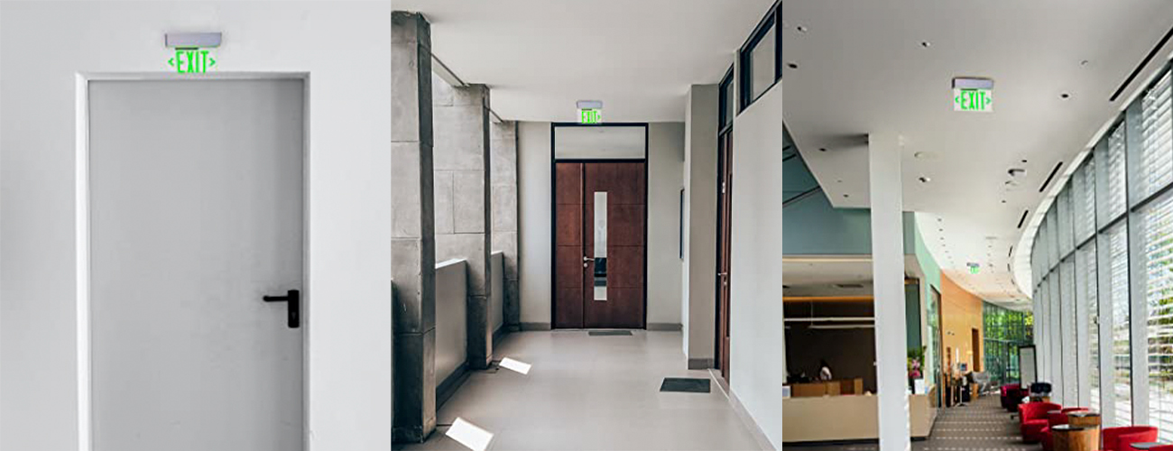 *Illuminazione - Questa serie di segni di uscita illuminata a bordo fornisce un'illuminazione a LED a vita lunga. L'unità è costruita con una scheda LED di uscita elevata verde.  Il consumo di energia è valutato a meno di 3 watt per le unità modello solo AC. Le unità di backup della batteria il consumo di energia è valutato a meno di 1 watt.