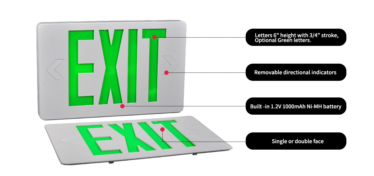 *Costruzione - Il segno di uscita a LED è costruito da un ritardo a fiamma V -0, V -0, alloggi termoplastici ad alto impatto. La casa bianca è standard.