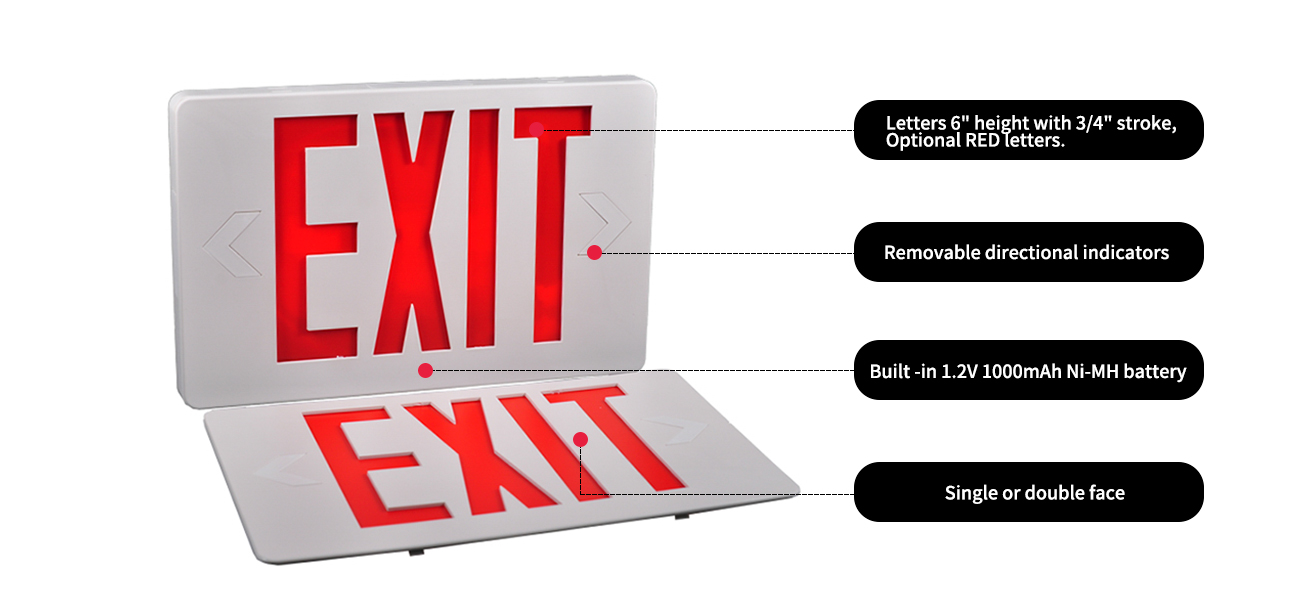 *Costruzione - Il segno di uscita a LED è costruito da un ritardo a fiamma V -0, V -0, alloggi termoplastici ad alto impatto. La casa bianca è standard.