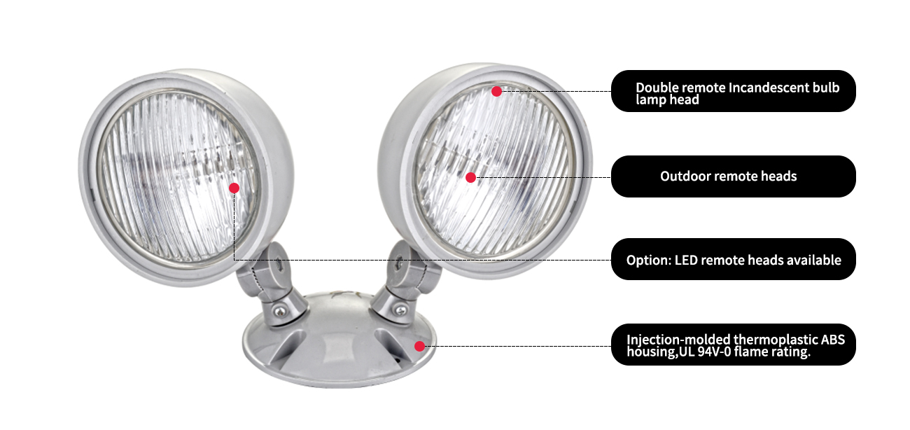 Casa / Prodotto / Luce di emergenza / Testa remota leggera di emergenza a LED / JRHWP-2-Outdoor Double Remote Incandescent Lample lampadina.